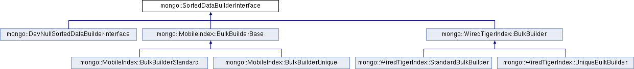 Implemented in mongo::WiredTigerIndex::UniqueBulkBuilder, mongo::WiredTigerIndex::StandardBulkBuilder, mongo::MobileIndex::BulkBuilderBase, and mongo::DevNullSortedDataBuilderInterface.